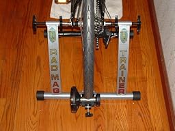 | 365 of 376 people found the following review helpful This review is from: RAD Cycle Products Indoor Portable Magnetic Work Out Bicycle Trainer (Sports) Pros* Installation took 10min. Just take out the back axle and install one that is provided. The bike will then fit into the stand. * Inexpensive. This is one of the less expensive models Cons * About as loud as a vacuum cleaner when mtn bike tires are installed * DiscountTommy is giving people $17 in merchandise to write 5 star reviews on Amazon. To quote from an email they sent me: "We will send you a FREE RAD Bike Hoist for writing a product review on Amazon... All you need is an Amazon.com account and a willingness to write a 5 Star review for our product." Operation * Resistance is increased by a) twisting a knob that pushes a roller against the tire or b) increasing your bicycle gear. * With mountain bike tires on, the unit is about as loud as an old loud vacuum and it is impossible to carry on a conversation while in use. I am able to hear 2 sounds. One is the humming sound of my tire against the roller. That is expected and... Read more 119 of 126 people found the following review helpful By DR (Portland, OR) - See all my reviews Verified Purchase This review is from: RAD Cycle Products Indoor Portable Magnetic Work Out Bicycle Trainer (Sports) This is the first bike trainer that I've owned, so I don't have much to compare it to, but I really like it. It was a great value for the price, and simple to put together and use. It's a little louder than I expected (thus the 4 out of 5 stars) when using it with my mountain bike, but it works well. If you purchase this product, or any other bike trainer for that matter, you probably want something to hold the front tire in place and raise it up a bit. Otherwise it feels like you are slightly sloped downhill. Overall, I'm happy with it. 89 of 95 people found the following review helpful By Michael Mcgowan (upstate NY) - See all my reviews Verified Purchase This review is from: RAD Cycle Products Indoor Portable Magnetic Work Out Bicycle Trainer (Sports) The unit came pre assembled, just have to open the legs and adjust the feet cups (they rotate to offer different height settings to level the unit) I didn't need the supplied speed axle, as it was the same exact one as already equipped on my Trek 7100. It isn't silent, but not deafening either. I would like to have seem a little more precision built into the rotational parts to quiet it down a bit, but I guess that's whats another few hundered dollars gets you so I'm not complaining. If you live in an apartment you might consider another model as this will have your neighbors banging on the walls or ceiling with a broom handle. Also, I tried using my wireless headphones linked to my laptop in another room to listen to music from the internet and when I started pedaling the sound went all screwy until I stopped. I pedaled up to 90rpm and my headphones died altogether. I stopped they came back on... pedaled again... died again, thus is the penalty for a magnetic trainer... beware if you... Read more |